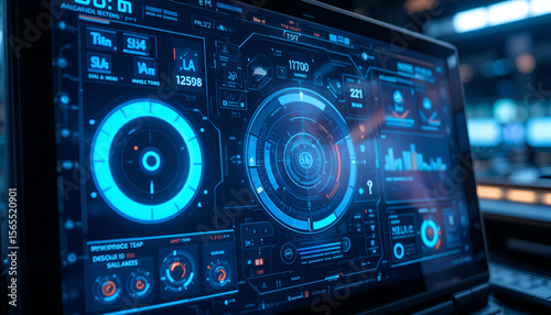 Fototapeta premium Futuristic interface display featuring complex data visualizations and...