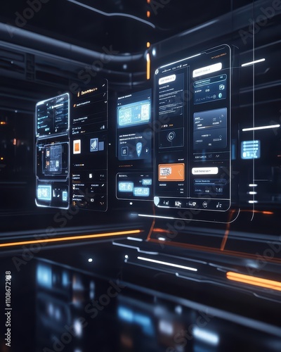Obraz premium Futuristic interface displaying digital information and notifications.