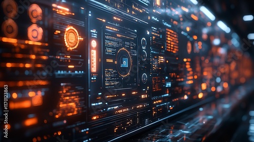 © siyons, Obraz premium Futuristic Interface Displays Complex Data Streams And Codes