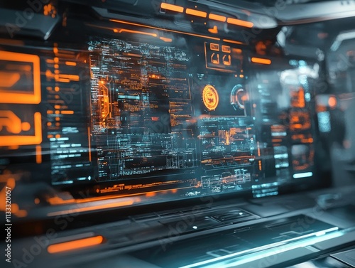 Fototapeta premium Futuristic interface displays glowing digital data.