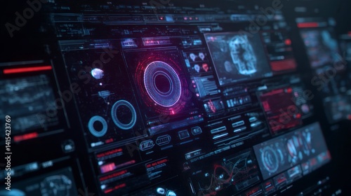 © BONDET LUCKY, Obraz premium Futuristic Interface: Glowing Neon HUD Displays Data Streams