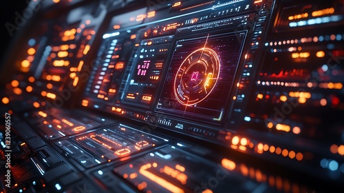 Fototapeta premium Futuristic interface neon panel control high resolution hd image