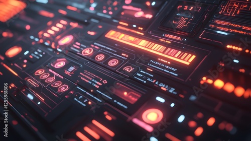 © irawan, Obraz premium Futuristic Interface Panel Displays Red Digital Data