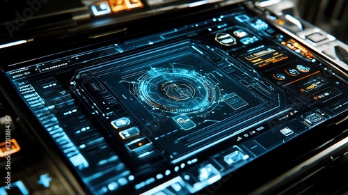 © NAIMAH, Obraz premium Futuristic interface screen activating, spaceship bridge, tech background
