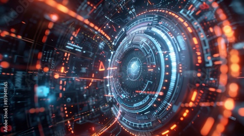 Fototapeta premium Futuristic interface showing encrypted data transfer between secure servers