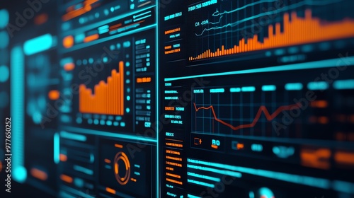 Obraz premium Futuristic interface showing realtime customer satisfaction levels, graphs...