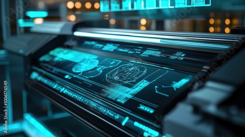 © Daisha, Obraz premium Futuristic Interface with Blue Lights