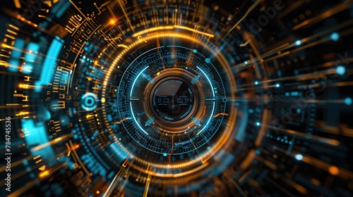 Fototapeta premium Futuristic interface with circular HUD elements and glowing lines in the...