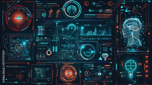 Fototapeta premium Futuristic Interface with Digital Brain and Data Visualization