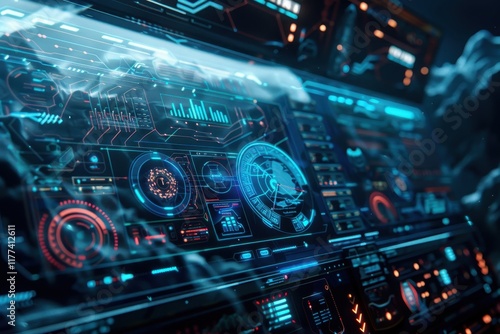 Fototapeta premium Futuristic Interface with Glowing Blue and Red Elements