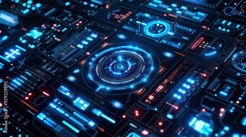 Obraz premium Futuristic Interface with Glowing Blue and Red Lights