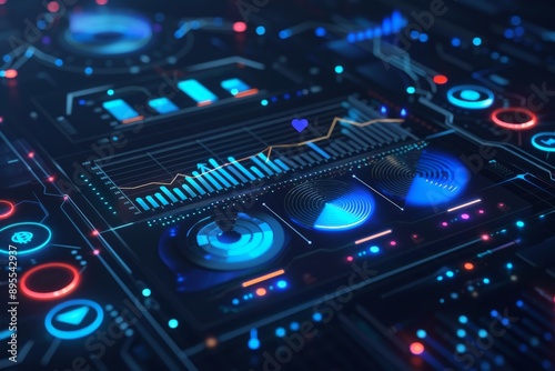 © Art Lucky, Obraz premium Futuristic Interface with Glowing Data and Charts