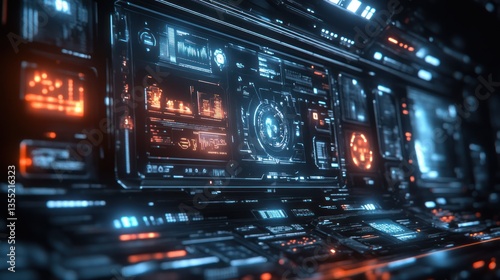 Fototapeta premium Futuristic interface with glowing displays and digital data.