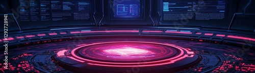 © InkCrafts, Obraz premium Futuristic interface with glowing elements and digital patterns in vibrant colors.