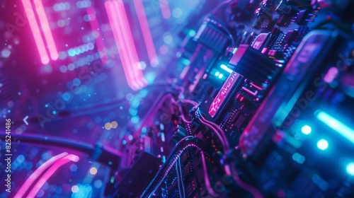 Obraz premium Futuristic interface with glowing lights and digital elements for tech or...