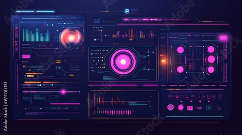 Obraz premium Futuristic interface with glowing neon elements.