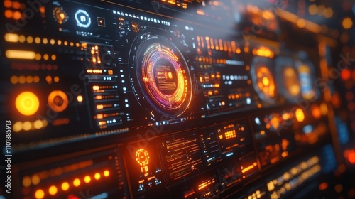 © Umi Sakina, Fototapeta premium Futuristic interface with glowing orange and blue details.