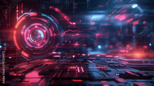 © Noppakun, Obraz premium Futuristic Interface with Holographic Elements