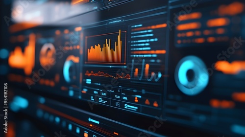 © Phichaphat, Obraz premium Futuristic Interface with Orange and Blue Data Visualizations
