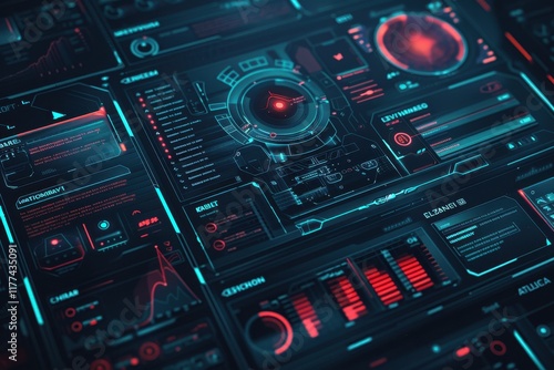 Obraz premium Futuristic Interface with Red and Blue Illuminated Graphics