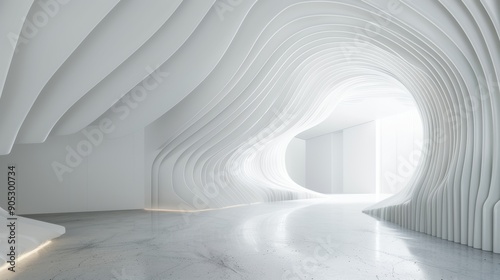 © Paul, Obraz premium Futuristic interior showcasing dynamic condensation trails on walls and ceiling, emphasizing the natural flow and movement within the space
