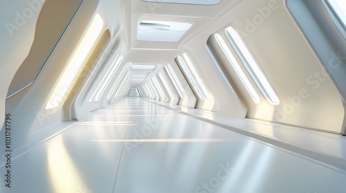 © CLOVER BACKGROUND, Obraz premium Futuristic Interior with Bright Linear Lights