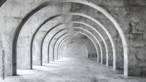 © peera, Fototapeta premium Futuristic interior with concrete arches in perspective