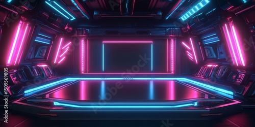 Obraz premium Futuristic Interior with Neon Lighting and Geometric Patterns