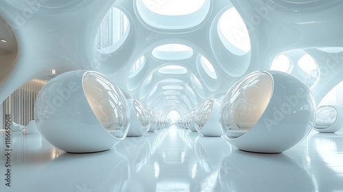 Fototapeta premium Futuristic interior with smooth, organic shapes.