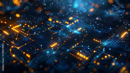 Obraz premium Futuristic Interlocking Digital Circuits and Shimmering Energy Fields for Neural Network Concepts