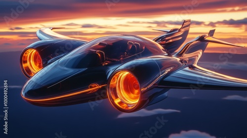 Obraz premium Futuristic Jet in Sunset