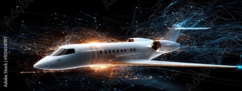 Naklejka premium Futuristic Jet with Digital Elements and Spark Effects