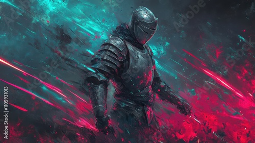 Fototapeta premium Futuristic Knight in Armor with Vibrant Energy Effects in Background