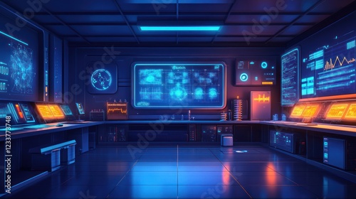 © Almahyra, Obraz premium Futuristic lab monitors data, nighttime research