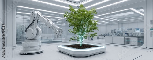 Obraz premium Futuristic lab with robot and plant