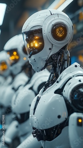 © DolonChapa, Fototapeta premium Futuristic laboratory with advanced humanoid robots in a factory setting picture
