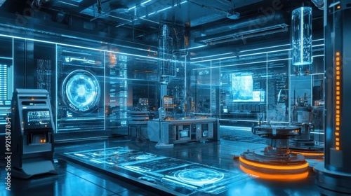 Fototapeta premium Futuristic Laboratory with Holographic Displays and Advanced Technology.