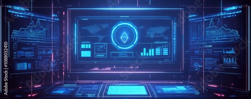 Fototapeta premium Futuristic law enforcement operations smart contract integration virtual command center high-tech environment cybersecurity viewpoint innovative solutions