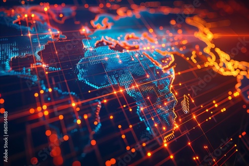 © Hungarian, Obraz premium Futuristic LED World Map