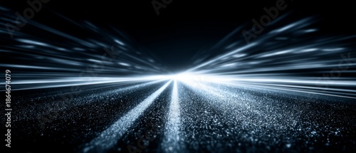 Fototapeta premium Futuristic light speed lines in digital space horizon