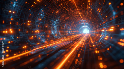 Fototapeta premium Futuristic light tunnel with glowing lines in digital sci-fi style
