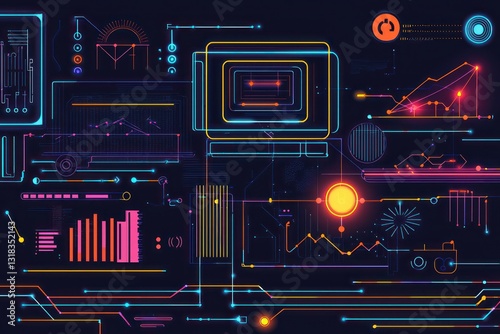 © Wajid, Obraz premium Futuristic line patterns and glowing effects depict tech.