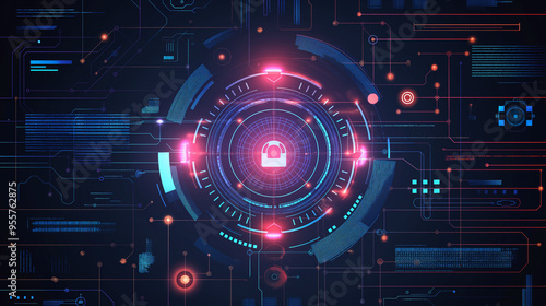© abiii, Obraz premium Futuristic lock on a computer screen, symbolizing robust cybersecurity measures