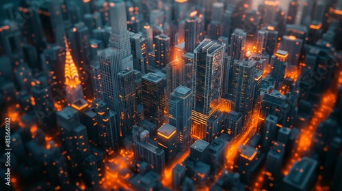 Naklejka premium Futuristic luminescent cityscape: aerial view with luminous 3d detailing in...