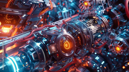 Fototapeta premium "Futuristic Machinery with Glowing Orange Lights – High-Tech Equipment in...