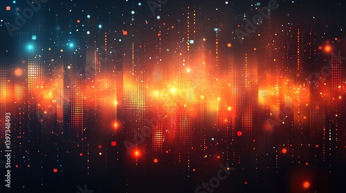 Fototapeta premium Futuristic matrix cityscape with vibrant digital particles and glowing lights