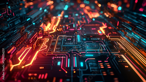 Obraz premium Futuristic mechanical background with glowing circuit patterns