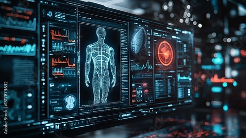 Obraz premium Futuristic Medical Interface with Human Anatomy Visualization and Data Analytics