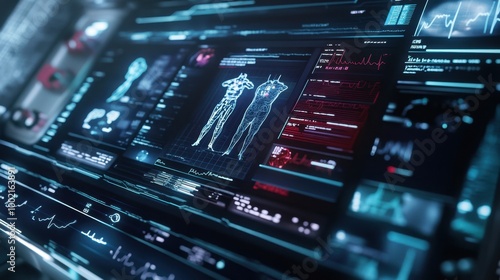 Obraz premium Futuristic medical technology showcasing electronic records on a high-tech interface, representing healthcare innovation.