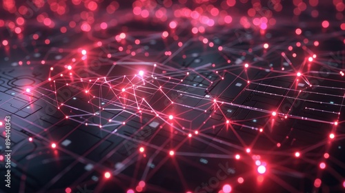 © KALEYA, Obraz premium Futuristic mesh grid with glowing nodes